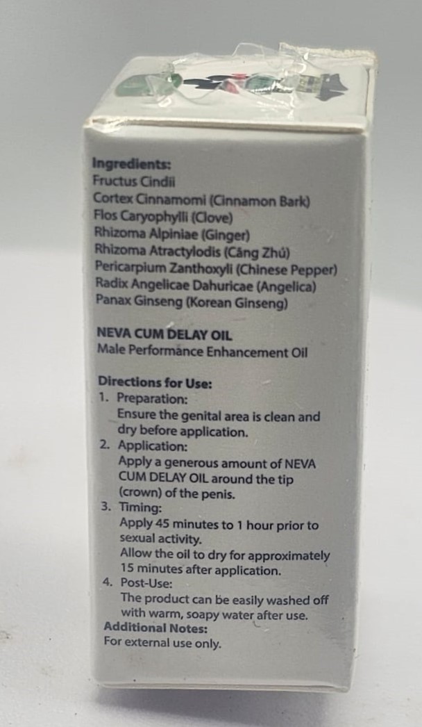 Herbal Choice Neva Cum Libido Delay Oil is a natural performance enhancer made from premium herbal extracts such as Korean Ginseng, Cinnamon Bark, Clove, and Ginger. Its brush-on liquid design makes application quick, discreet, and effective.