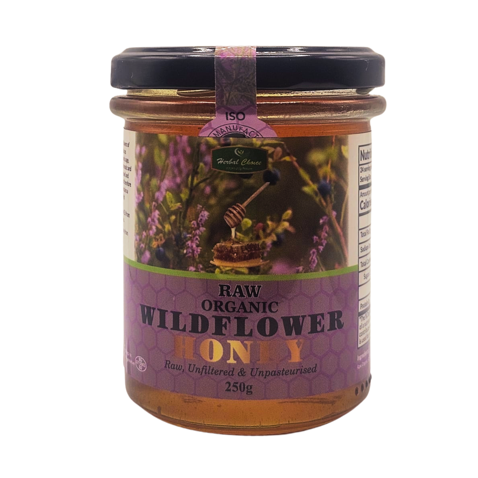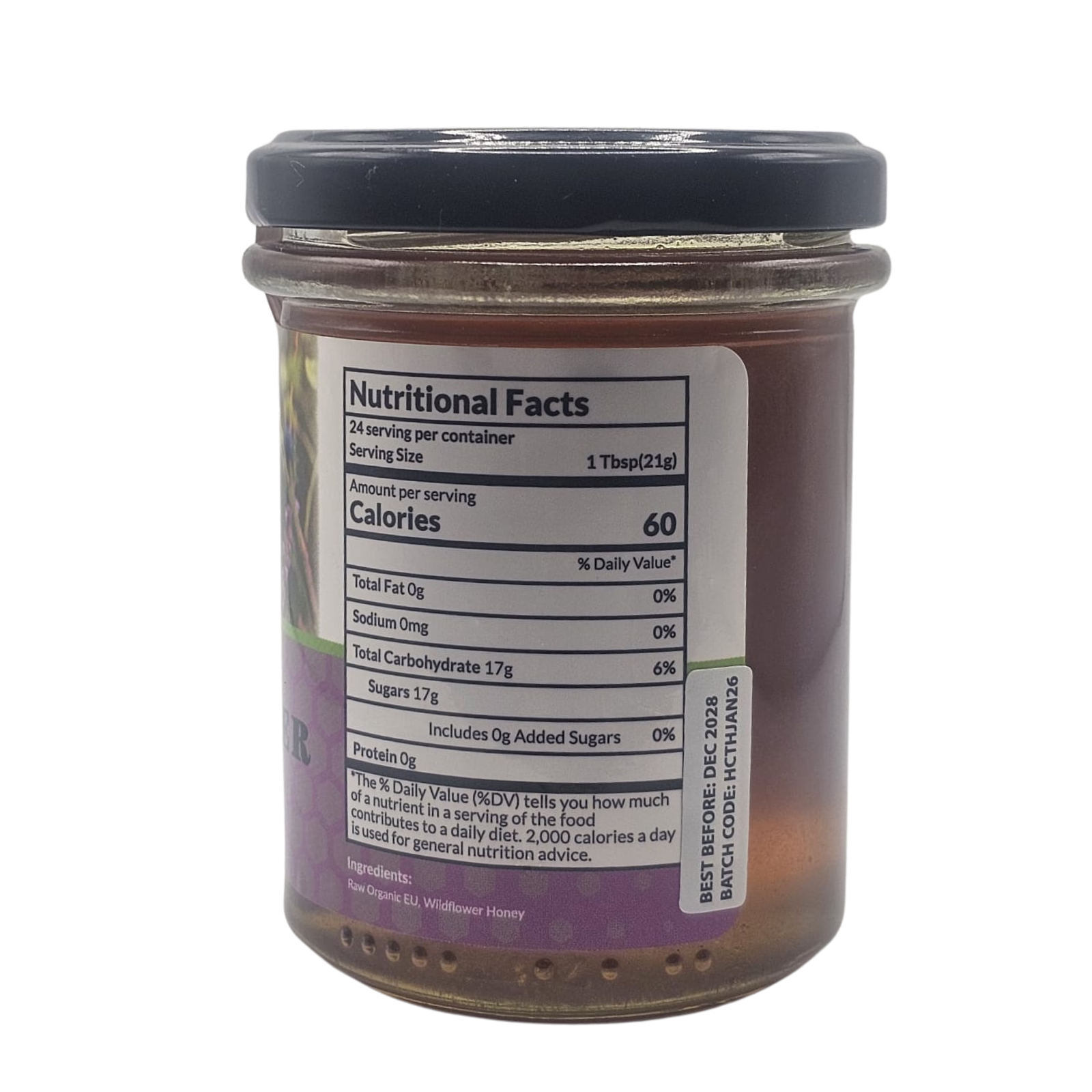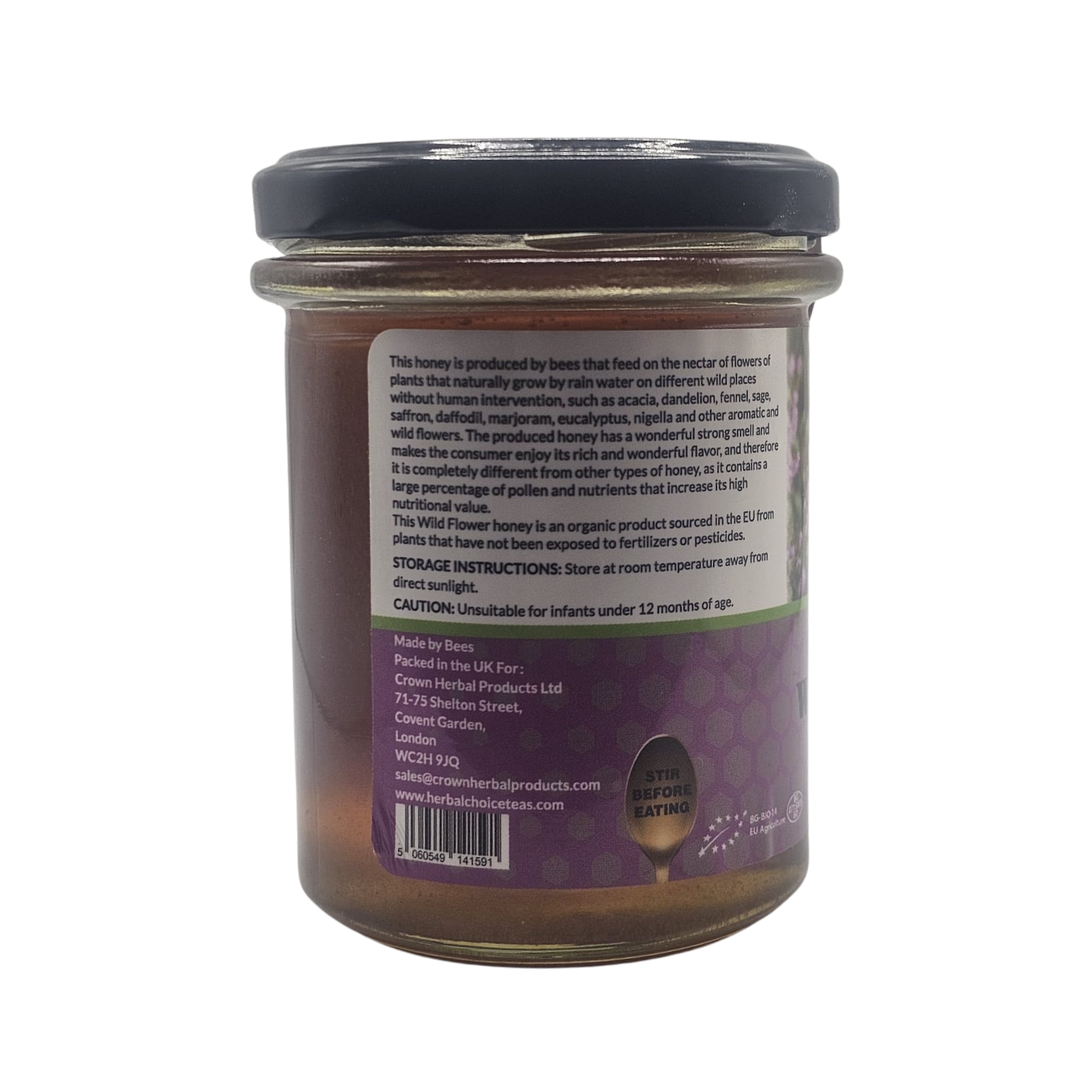 Organic Raw Wildflower Honey 250g is harvested from diverse wildflowers across pristine EU regions, delivering a naturally rich flavor and authentic aroma. This honey is raw and unfiltered, preserving its natural enzymes, pollen, and beneficial nutrients.