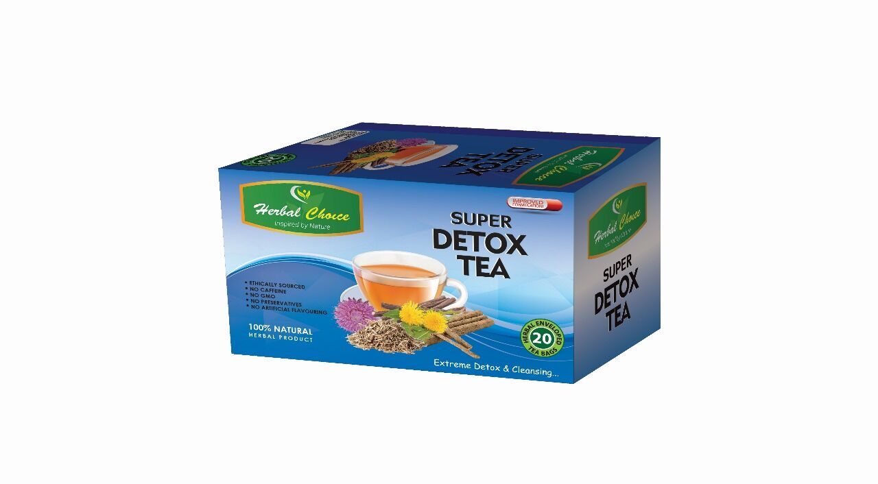 Super Detox tea contains Zinc, Cumin fruit, Agrimony, Artichoke, and wild pansy to alleviate constipation and diarrhea. The tea enhances smooth bowel movement, promote effective assimilation of food nutrient, regulates the gall bladder, and provides relief from bloating, heartburn, or nausea
